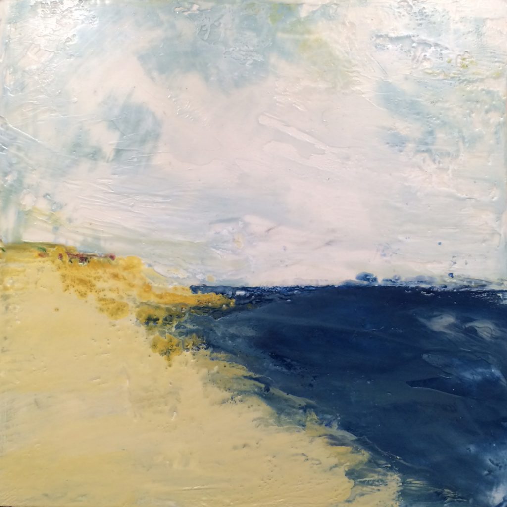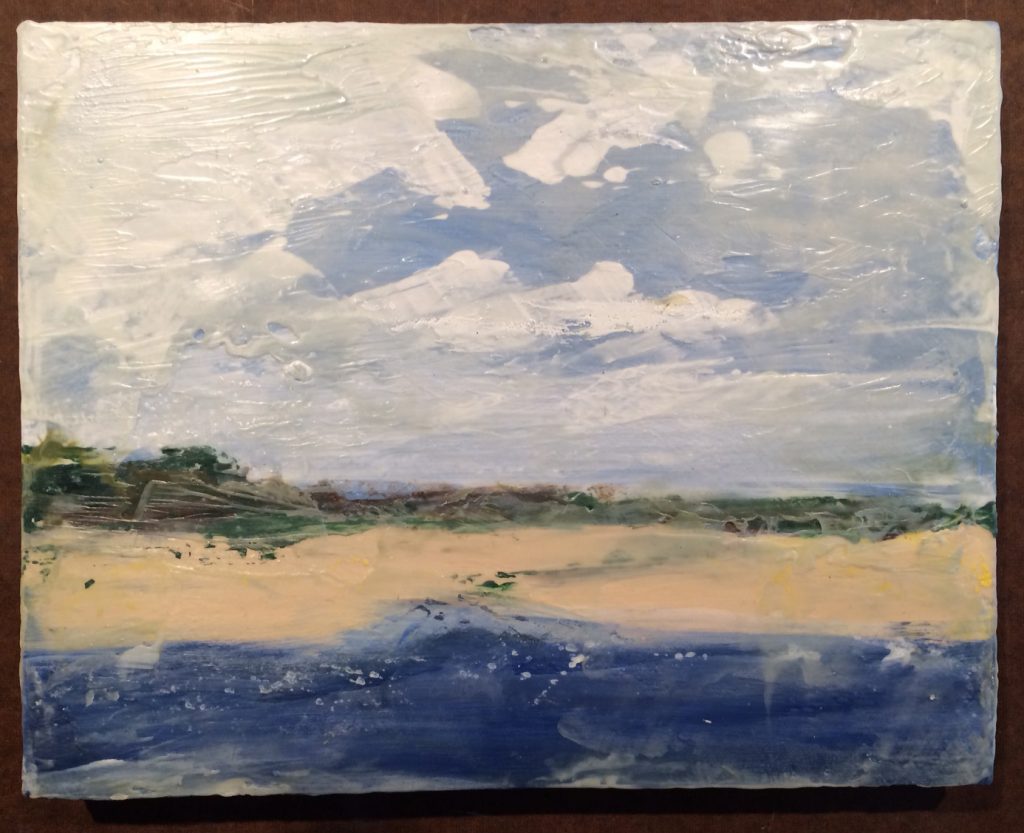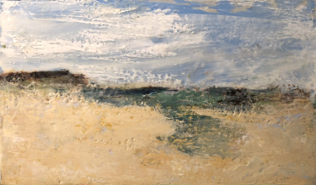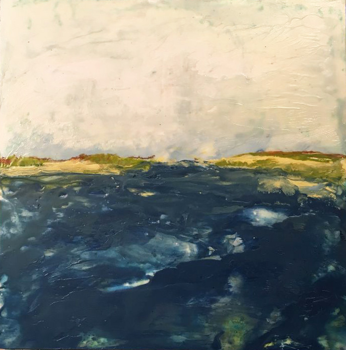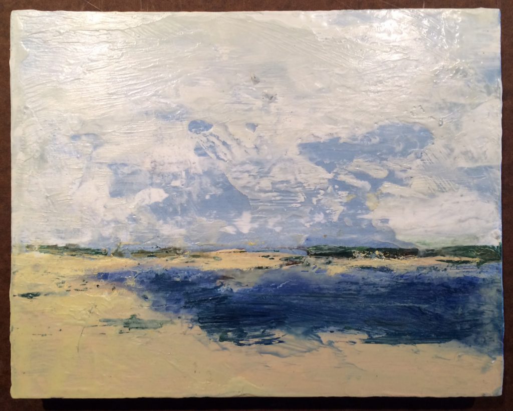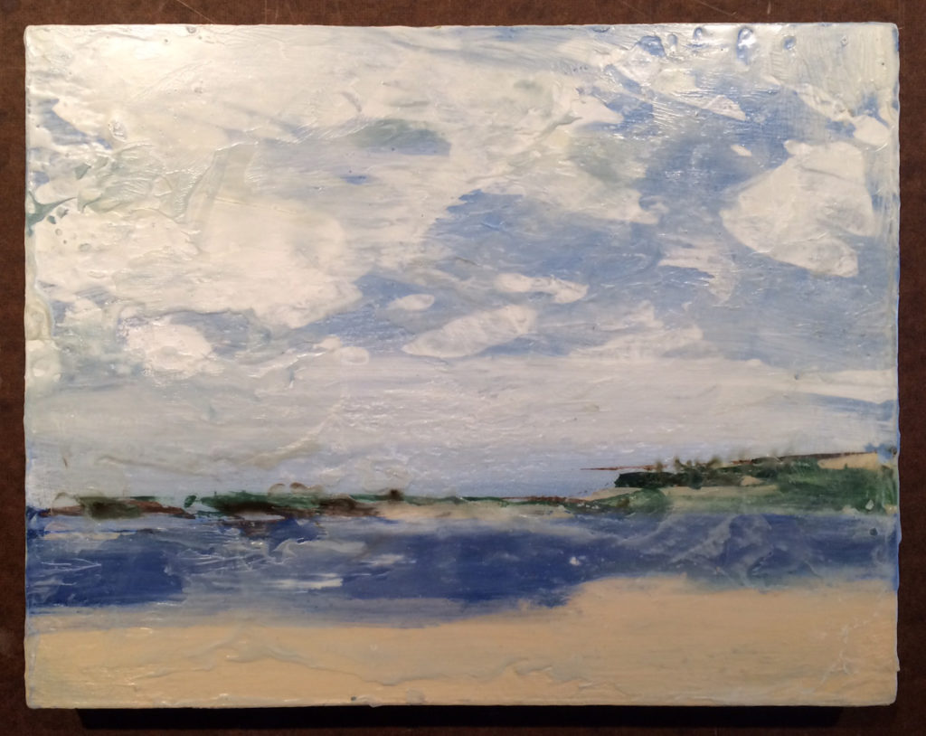 The Inlet, 2022, Encaustic on Panel 9 xc 15.5″