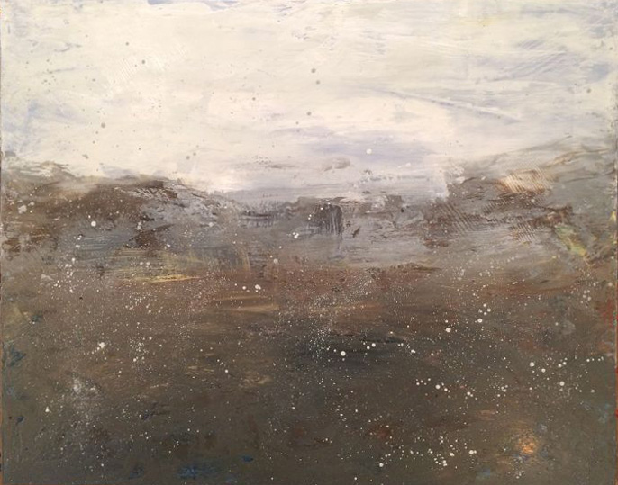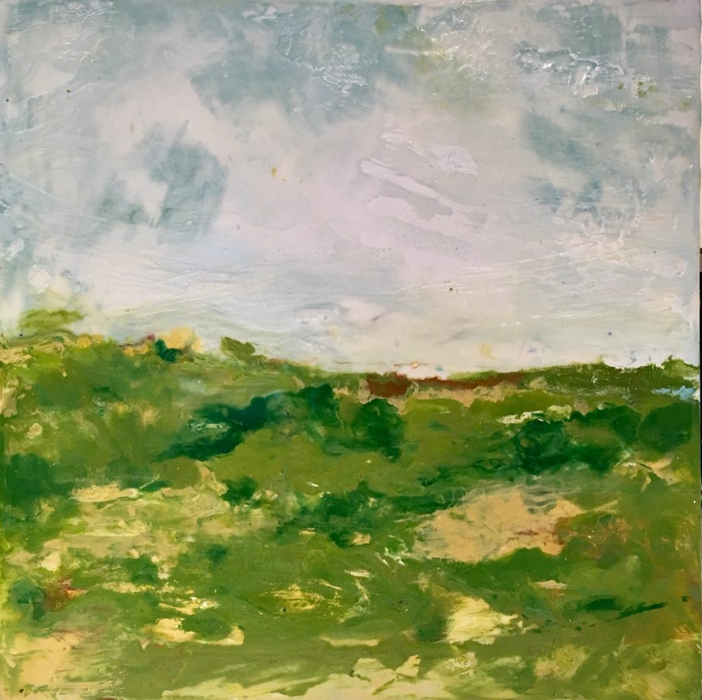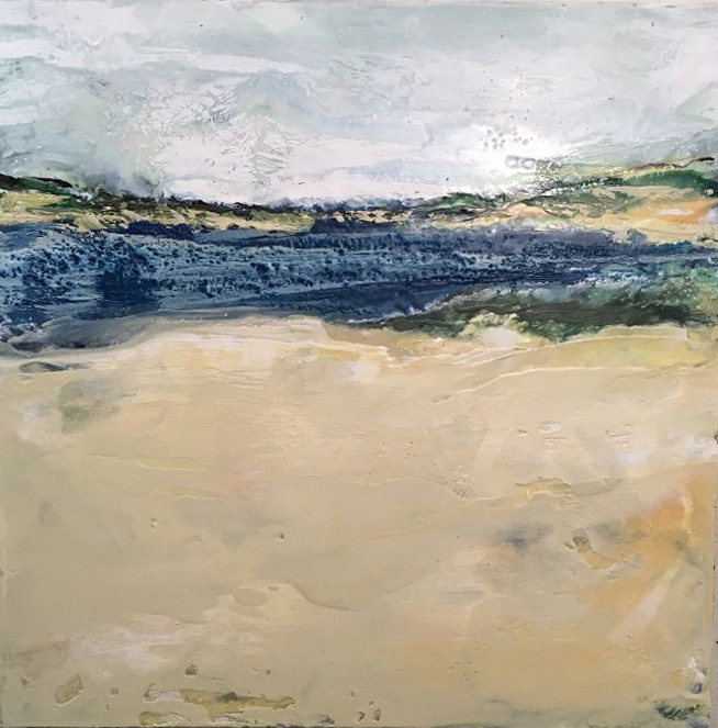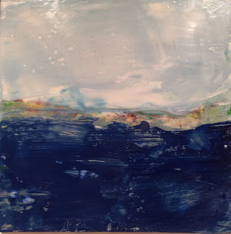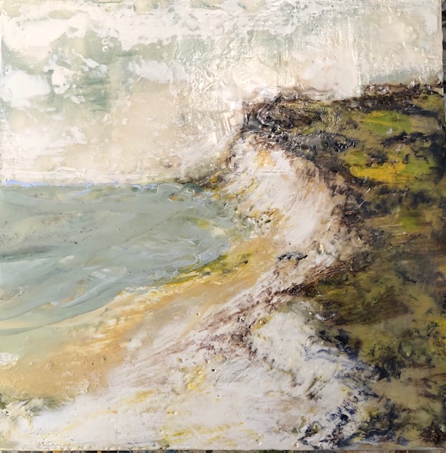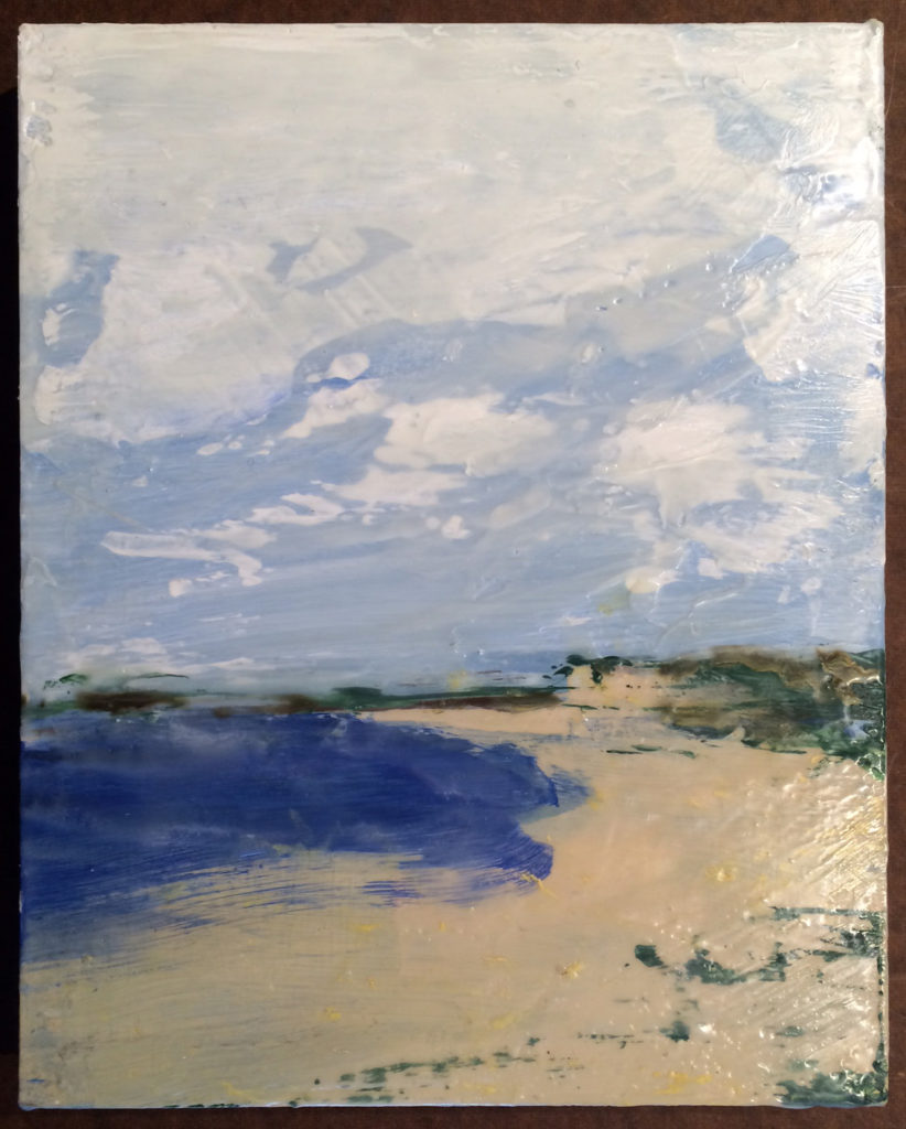 The Inlet, 2022, Encaustic on Panel 9 xc 15.5″